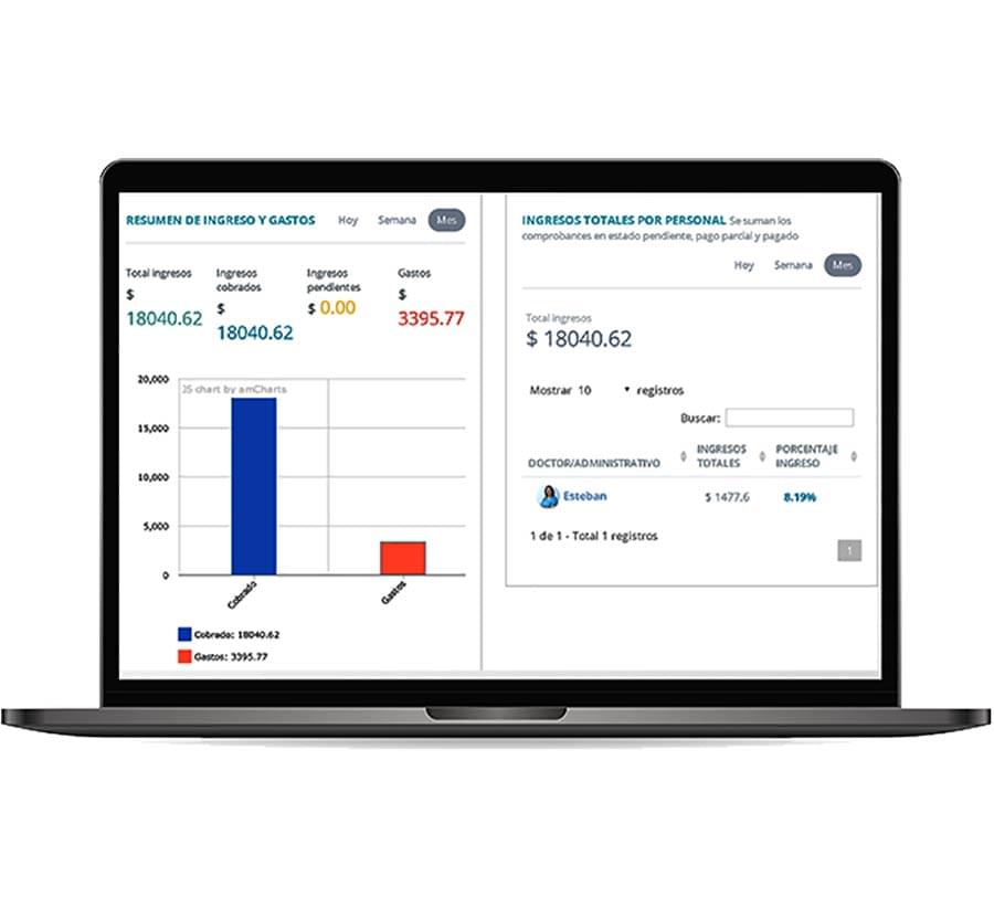 Dispones de un gran número de reportes administrativos (ingresos, saldos pendientes, facturación por doctor, entre otros); y de atención (citas, morbilidad, entre otros).